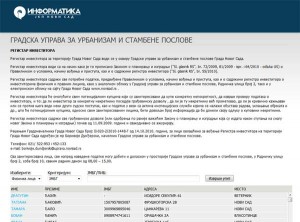 Za izradu Registra investitora JKP Informatika nije dobila novčanu nadoknadu. Grad Novi Sad je naš osnivač, a projekti i aplikacije vezane za rad Grada i Gradske uprave rade se po godišnjem planu i programu i nisu posebno plaćeni (sajt Grada Novog Sada, sajt Gradske poreske uprave, Gradske uprave za sport i omladinu…)