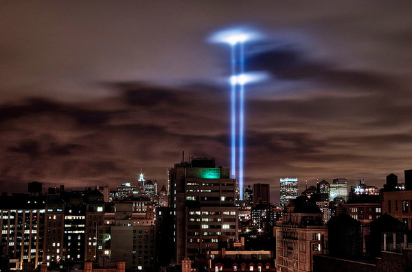 Poštovanje žrtvama poginulih u napadu terorista 11. septembra odato je postavljanjem snopa svetlosti koje podsećaju na porušene kule u Njujorku.