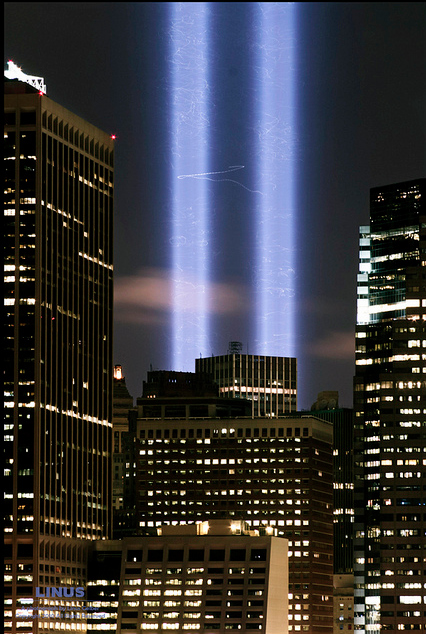 Instalacija Tribute in Light sastoji se iz 88 svetala postavljenih na mestu bivšeg Svetskog trgovinskog centra. Svetla tokom noći kruže a u jednom trenutku se sva zaustave.