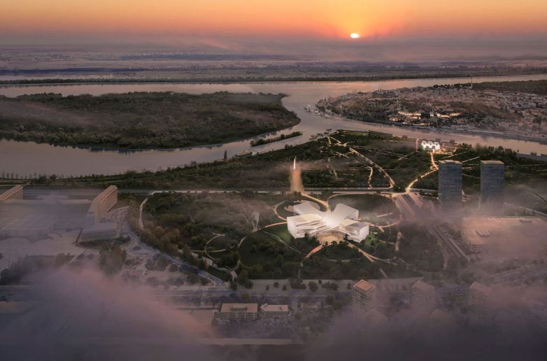 Pobedničko rešenje londonskog studija Amanda Levete Architects (AL_A) zamišljeno je kao koncertna dvorana bez izražene prednje ili zadnje fasade, čime se postiže snažna integracija sa pejzažom parka Ušće i reke Dunav.