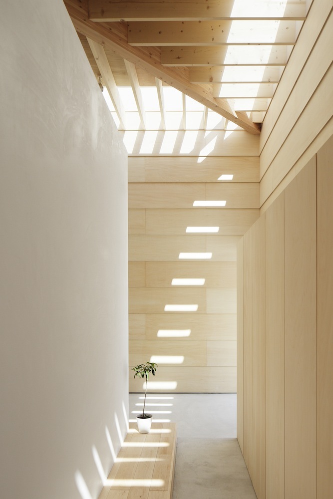 Kuća u Tokojavi koju je projektovao arhitektonski biro mA-style Architects zanimljiva je iz više aspekata. Pre svega enterijerijerski je veoma svedena ali uprskos tome ona deluje toplo i udobno. To je postignuto odabirom materijala, sa akcentom na hrastu, i igrom svetlosti. Ali odakle dolazi svetlo? I zaista, na fasadi nema prozora! Pošto je kuća u Japanu a u Japanu je sve moguće, napravljena je kuća bez prozora. To ne znači da svetla nema ali ono umesto sa strane dolazi od gore.