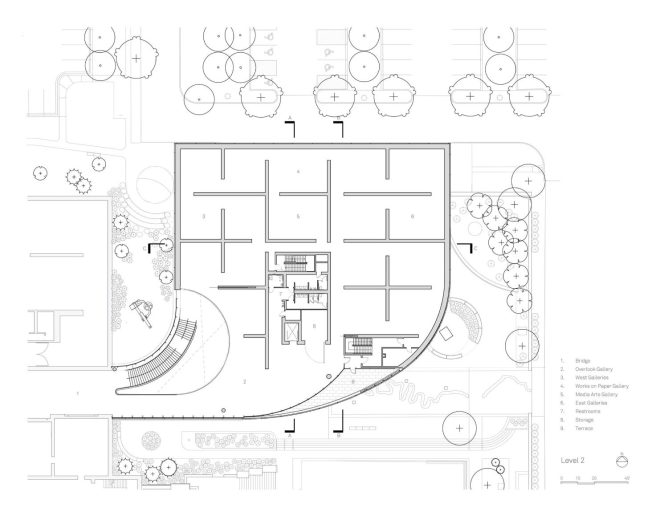 Podeljena na dva nivoa, nova zgrada muzeja sadrži dodatne galerije, prodavnicu, javne prostore i novi glavni ulaz.