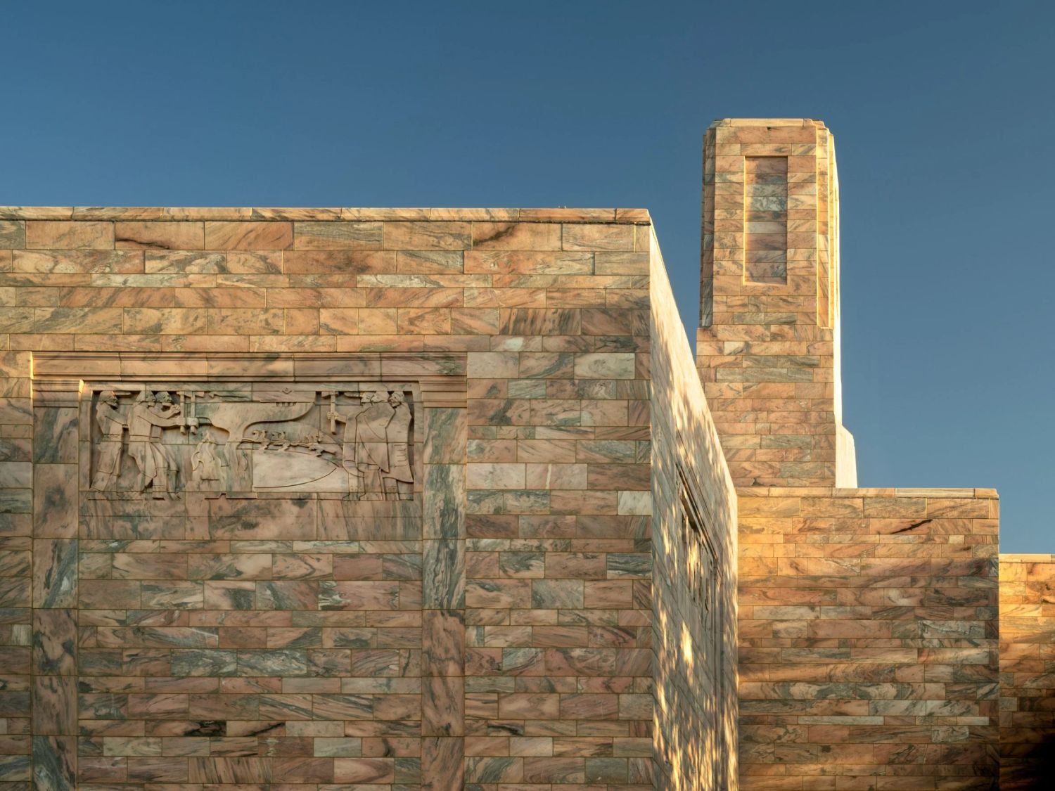 Muzej se sastoji od glavne zgrade koja je završena 1931. godine od strane arhitekata Džona i Alana Mekdonalda i proširenja koje je izvedeno po projektu Normana Fostera 1994. godine, a dva objekta su povezana tankim staklenim atrijumom. Obe zgrade su obložene karakterističnim pink mermerom.