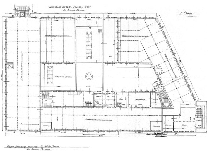 Fabrika je podignuta uz stari železnički most, imala je sopstvenu prugu, kej za pristajanje brodova, električni kran za utovar i istovar robe, sopstvenu pumpu na vodu, električnu centralu, sale za preradu i sortiranje hartije opremljene najmodernijim nemačkim mašinama, ambulantu za radnike, kuhinju, trpezariju, sobu za odmor, fabričku kapelu itd.