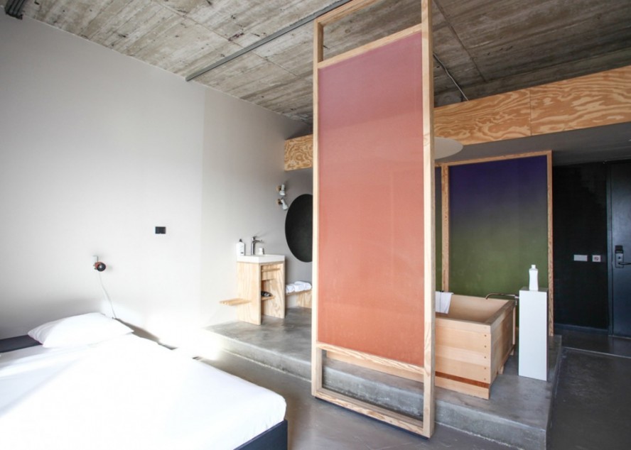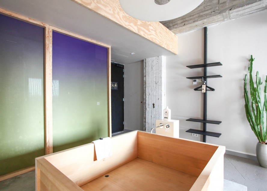Volkshotel je krajnje neobičan hotel u Amsterdamu jer su devet specijalnih apartmana, od 170. klasičnih soba, uradili devet različitih dizajnera. Svaki od njih je poseban a nama je za oko zapao apartman koji je osmislila dizajnerka Hanna Maring. Ona je okviru prostranog apartmana kreirala zen zonu koristeći drvenu kadu u japanskom stilu i polutransparentne pregradne panele.