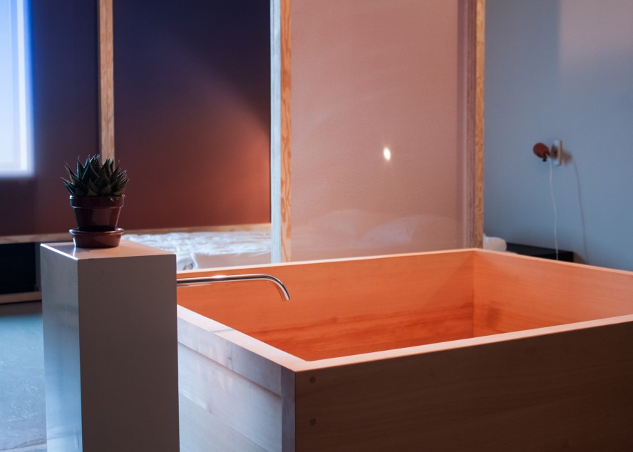 Bathing Bikou je jedan od devet specijalnih apartmana u hotelu Volkshotel u kojem se gosti kupaju u drvenoj kadi.