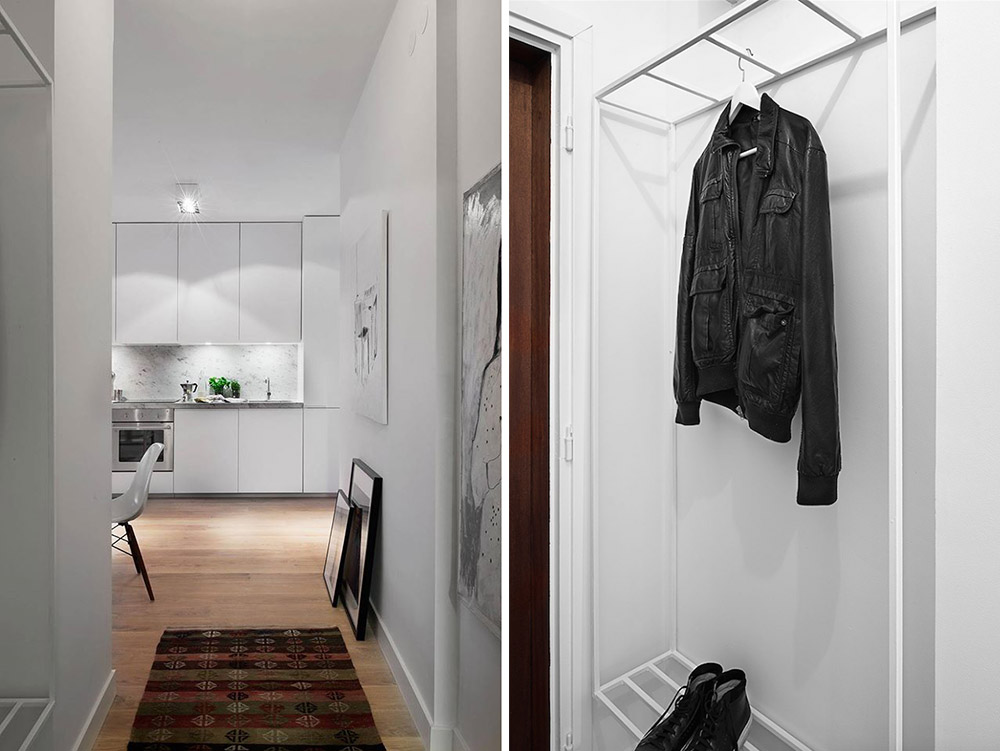 Mali dvosoban stan od 39 m2 u Stokholmu uređen je dosta jednostavno: beli zidovi i nameštaj, prozori bez zavesa, lagani komadi nameštaja bez prenatrpavanja.
