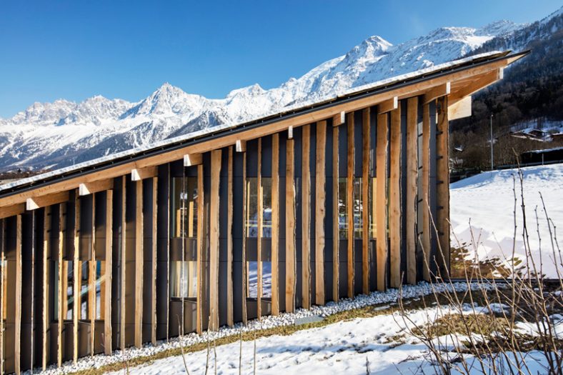 Fasada objekta, kao i krov, izvedeni su u kombinaciji drveta i stakla.