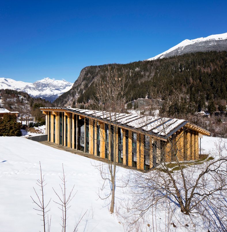 Krovne ravni prate prirodni pad terena, s nagibom koji je potreban da se sneg ne zadržava na njemu, piše Designboom.