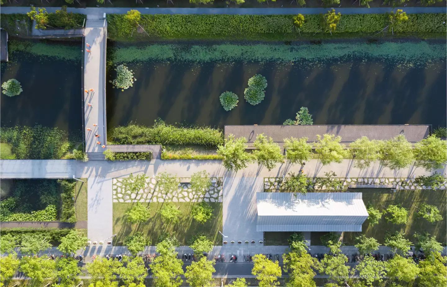 Projekat nazvan Xuhui Runway Park nastao je na mestu piste nekadašnjeg šangajskog aerodroma Longhua i prostire se na ukupnoj površini od oko 14,63 hektara. Umesto da potpuno izbrišu prošlost aerodroma zatvorenog 2011. godine, arhitektonska firma Sasaki odlučila je da se poveže sa njom i da je koristi kao inspiraciju.
