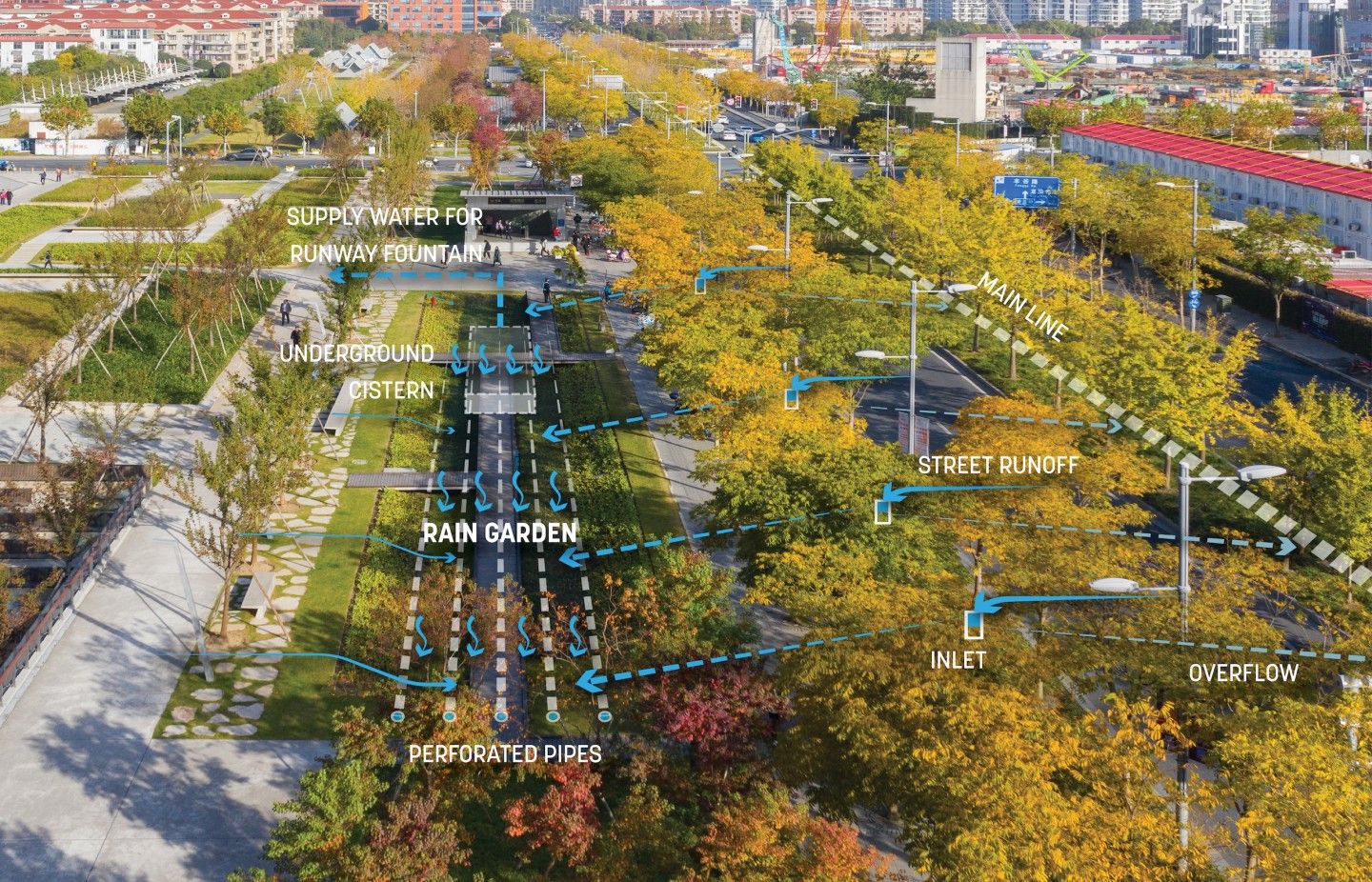 Sva kiša koja padne na površinu parka se sakuplja, filtrira i vraća u sistem.