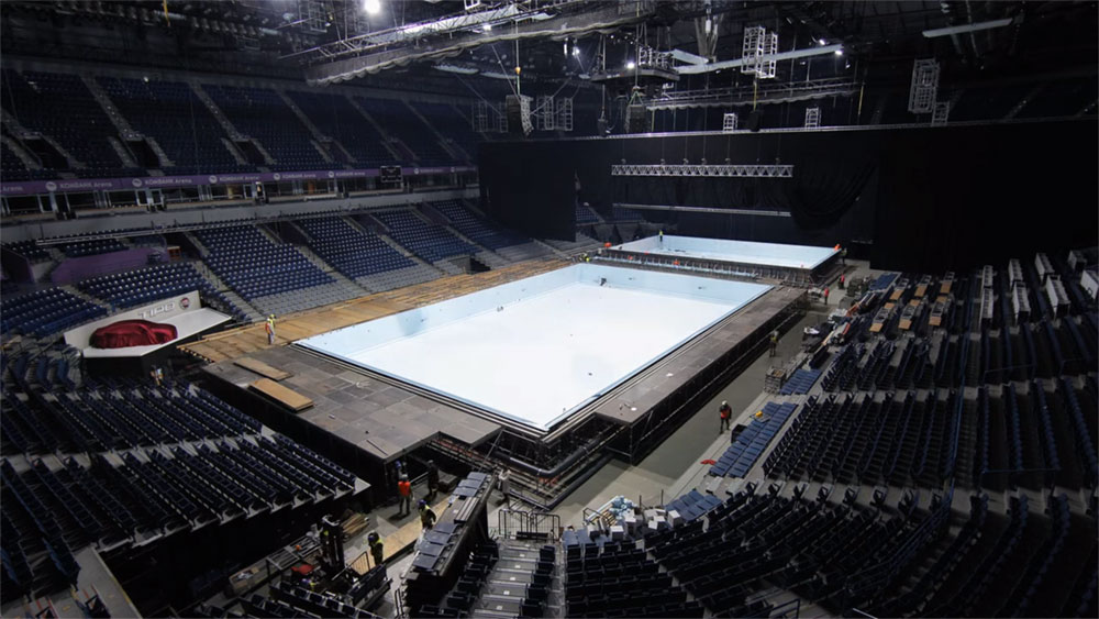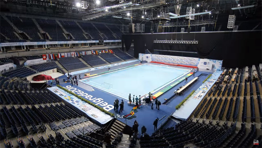 Pogledajte ubrzani snimak izgradnje bazena koji je urađen za potrebe Evropskog prvenstva u vaterpolu 2016 koji se održava u Beogradu.