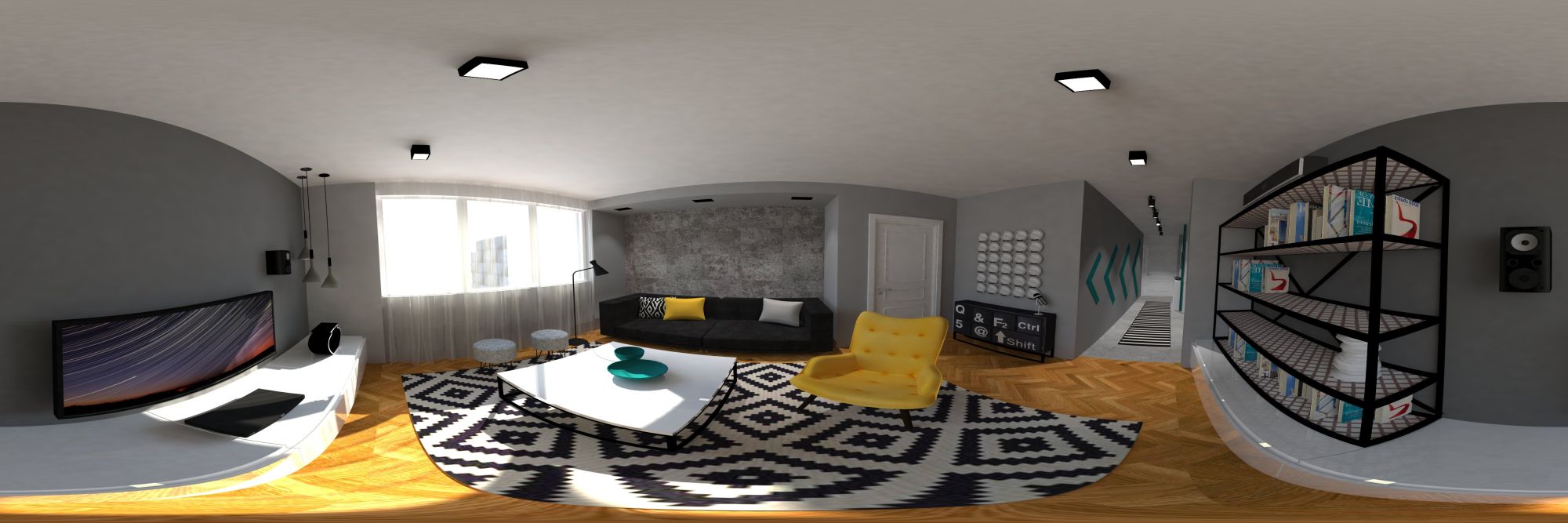 Postoje brojni alati i softveri koji sferične rendere pretvaraju u panoramske VR snimke a mi vam preporučujemo da iskorisite besplatni onlajn alat koji se zove SphereCast. Sve što treba da uradite jeste da aploadujete obrađeni render i za par sekundi dobićete panoramski snimak koji možete posmatrati u 360 stepeni putem miša ili, ako imate VR naočare, u virtuelnoj realnosti tako što ćete kliknuti na ikonu u donjem levom uglu. Desna ikona služi da pokupite kod kojim možete embedovati panoramu u stranicu kao što je ova: