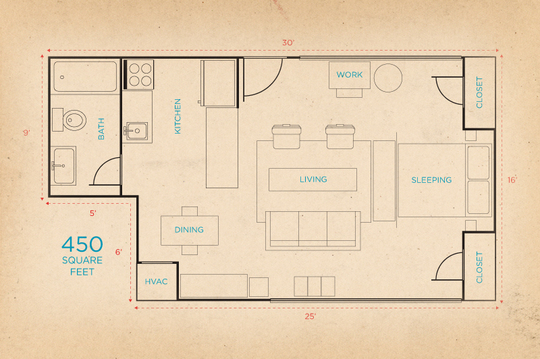 Mali stan od 41 kvadratini metar u Hjustonu učestvovao je na izboru za najlepši stan male kvadrature za 2012 godinu. Nije pobedio ali je stan primećen zbog interesantnog rešenja pregrade između sobe i dnevnog boravka.