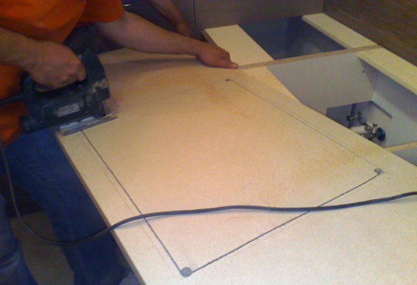 1. Položite sudoperu na ploču sa otvorom na dole. Odredite budući položaj sudopere i grafitnom olovkom iscrtajte konrure ivice sudopere.