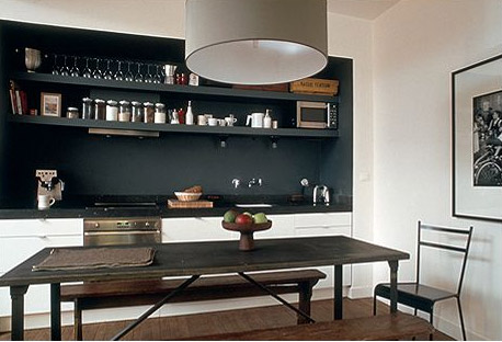 Kuhinjom, koja se nalazi u blizini ulaza u stan, dominiraju tamni tonovi. Na ovaj način Filip Harden je odvaja, ne fizički nego vizuelno, od ostatka stana stvarajući dimaničan kontrast bele dnevne sobe i crne kuhinje.
