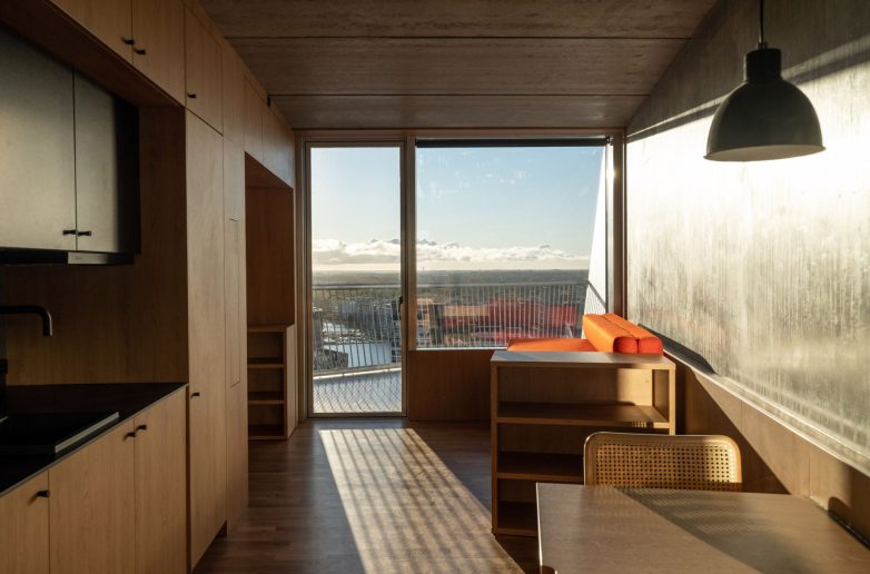 Stambene kule imaju 495 „soba za mlade“ (tako su ih sami projektanti nazvali, mi bismo to možda preciznije opisali kao garsonjere), zapravo stanova za iznajmljivanje (ne prodaju se!), poređanih kao zrnca kukuruza oko heksagonalnog jezgra, koje podseća na crvenu sredinu klipa kukuruza (verovatno pojam u našem jeziku koji ima najviše varijanti: čokov, šapurika, oklasina, čokanj itd. do beskraja).