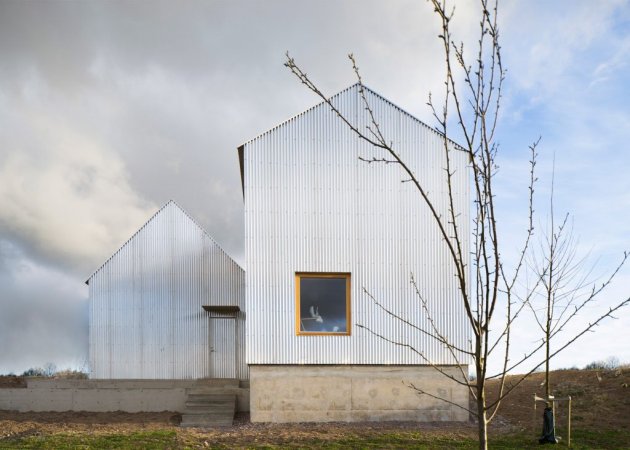 Dva objekta s kosim krovovima pokrivenim valovitim aluminijumom čine novi dom mame švedskog arhitekte Bjorna Forstberga.