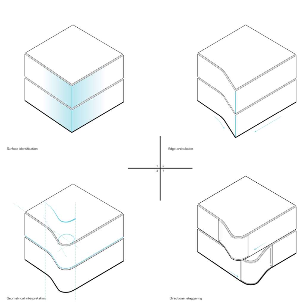 Zakrivljene staklene površine daju objektu skulpturalni izgled, a smena konkavnog i konveksnog zakrivljenja razigrava objekat ka uličnom frontu. Takođe, na ovaj način se stvara “polu-lebdeći “unutrašnji prostor, što stvara posebnu atmosferu u enterijeru.