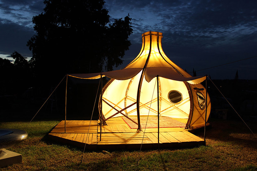 Froute pod, delo studija Giant Grass je polu-trajno instalirana forma. Ona se može koristiti za smeštaj, meditaciju, letnju baštu ili kako su sami autori rekli za „glamping“, odnosno glamurozno kampovanje. Međutim za ovakvu vrstu kampovanja, možda bi problem bio transport… osim ako ne odlučite da kamp naselje bude vaše dvorište.