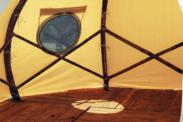 Dva bočna krila ovog šatora mogu se otvarati i formirati tendu, koja se pruža preko drvene platforme. Ona savršeno izdiže ovu konstrukciju dovoljno van zemlje, kako bi korisnicima bilo udobnije a istovremeno i dovoljno blizu prirodi. Međutim, baš zbog ove platforme učestaliji transport ove konstrukcije bio bi problematičan.