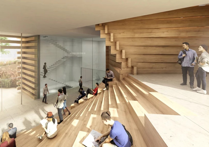 Muzej je podeljen na tri nivoa, počevši od većih izložbenih prostora u prizemlju, dok se na ostalim spratovima nalaze odvojene sale za nešto manje radove. Atrijum u centru objekta vizuelno povezuje različite sektore u unutrašnjosti, dozvoljavajući prirodnom svetlu da obasja zgradu.