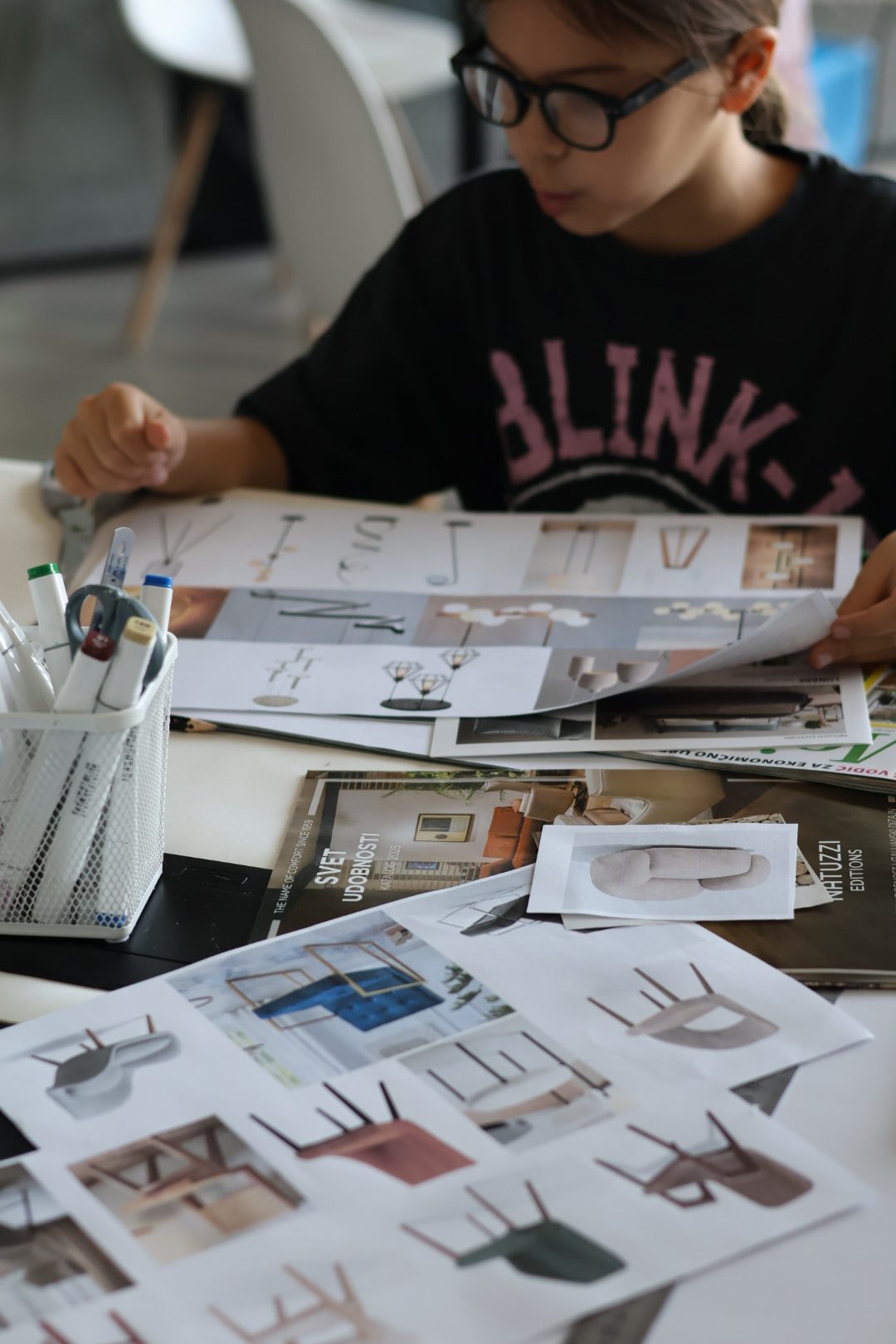 Unutrašnja arhitektura ove godine prvi put je obrađena kroz materijale i teksture. Deca su izradila mood board i material board, koristeći betonske i drvene uzorke, keramičke pločice, ali i univer koje je ustupila kompanija Pinoles. Finalni radovi su uramljeni, pa su polaznici mogli da osete proces blizak profesionalnoj praksi arhitekata.