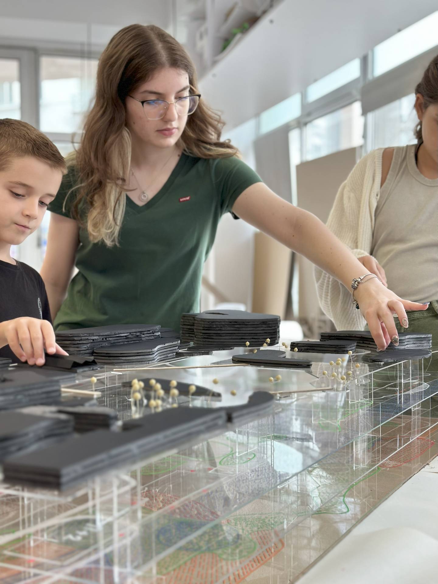 Urbanizam je bio poseban akcenat škole kroz radionicu “Layering the city”. Deca su analizirala grad kao niz slojeva – zone, saobraćajnice, objekte, zelenilo – a zatim ih međusobno preklapala. Rezultat su gradske celine sa 30% zelenih površina i velikim brojem biciklističkih i pešačkih staza, što je u kontrastu sa realnošću u kojoj većina njih živi.