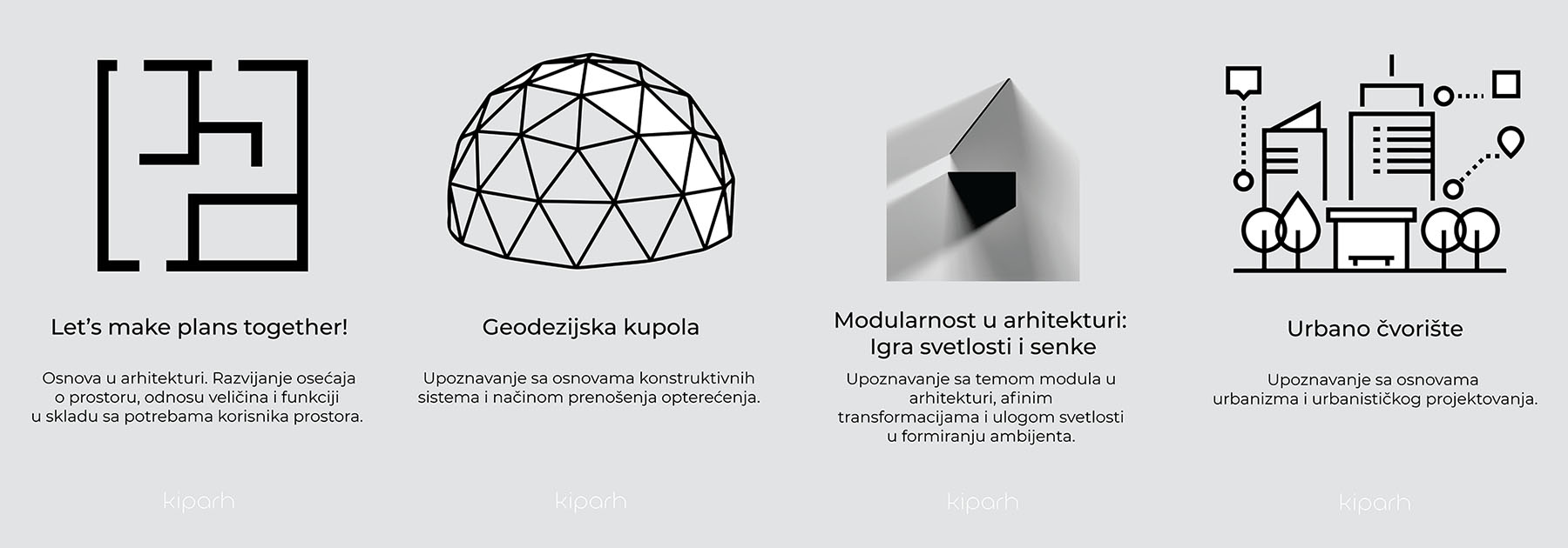 „Projekat letnje škole je namenjen i deci koja nisu naši redovni učenici, a žele da se upoznaju sa arhitekturom i svim njenim sferama u karakterističnoj Kiparh atmosferi“ – ističe Sara Parezanović i dodaje: