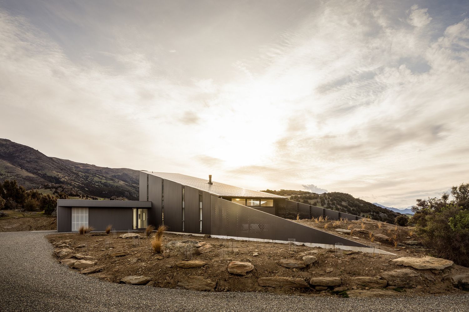 Objekat nazvan Wanaka Wedge House nalazi se u novozelandskom Južnom ostrvu, a okružena je planinama. Njena spoljašnjost izvedena je baš u skladu sa tipičnom savremenom novozelandskom arhitekturom, te je fasada prekrivena valovitim metalnim panelima.