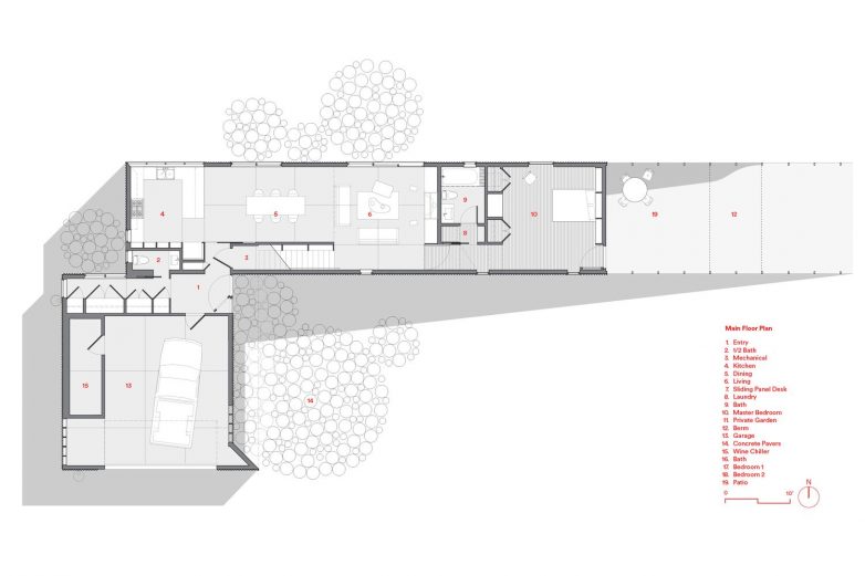 Zidovi kuće izvedeni su od “drvene strukture sa okvirima od lokalnog LVL drveta kako bi se izbegao intenzivan transport materijala”, što bi bio manje održiv proces, navode arhitekte za Inhabitat.