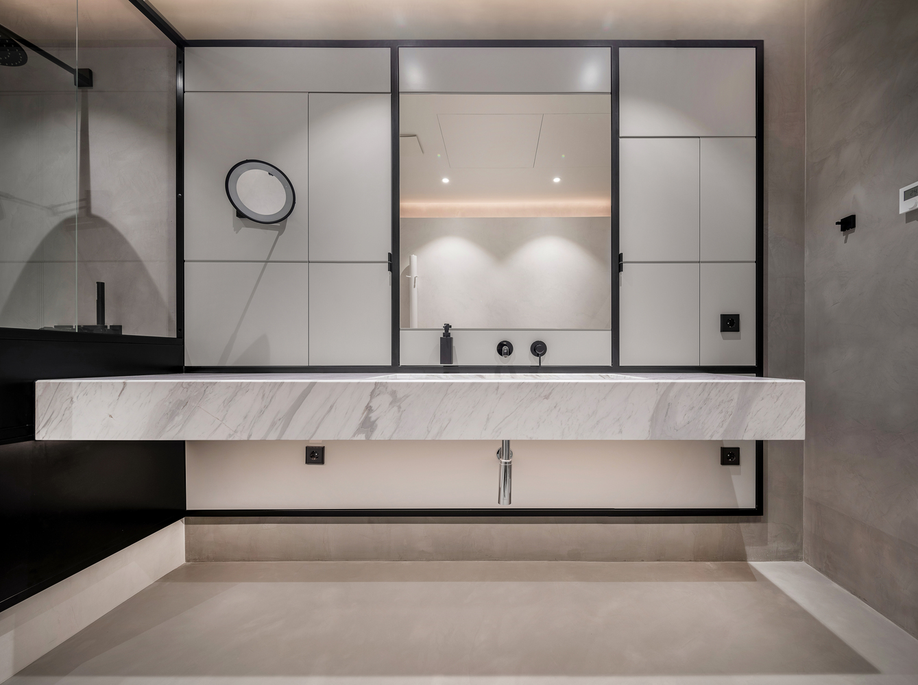 Jedan od zanimljivijih i složenijih elemenata bio je kupatilski boks, izveden kao potpuno zvučno izolovana jedinica u okviru prizemlja, koje je inače organizovano u otvorenom konceptu.
