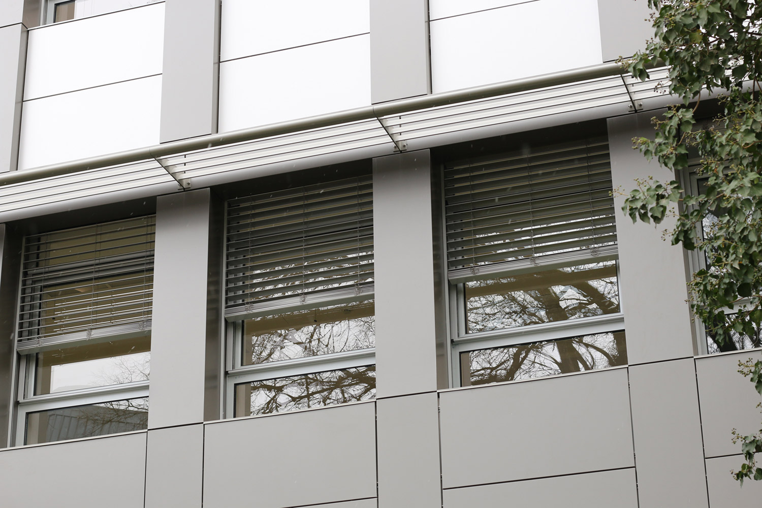 Za fasadnu stolarija na Internoj klinici izabrani su aluminijumski profili sa termoprekidom, dvostrukim staklom punjenim plemenitim gasom, a izvedene su i automatske žaluzine s daljinskim upravljanjem. Za krovni pokrivač izabran je profilisani trapezni lim.