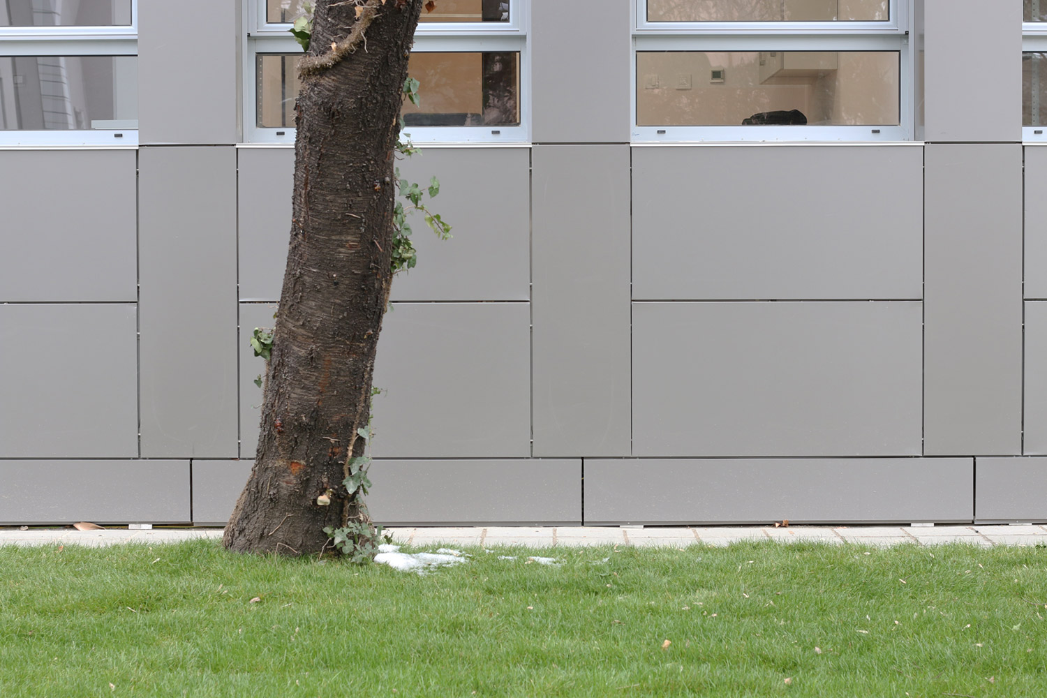 Urađena je ventilisana fasada, Alubond na potkonstrukciji dok je za termoizolacioni sloj postavljena kamena vuna i paropropusna folija. Ova materijalizacija odabrana je kako bi se objekat što što bolje uklopio sa zgradom Urgentnog centra sa kojim je povezana toplom vezom – pasarelom.