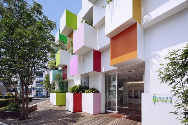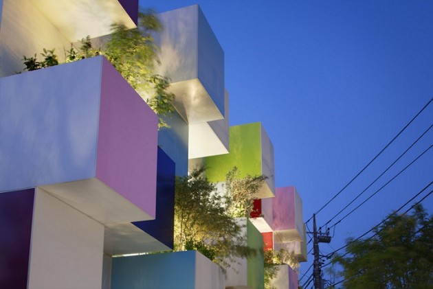 Ovo je postignuto tako što iz primarnog kubusnog oblika zgrade, izlaze manji šareni kubusi. Oni su izvedeni u četiri različite dubine, tako da se boje preklapaju ili nestaju, zavisno od ugla gledanja. U 12 kocki nalaze se mini-bašte koje daju dodatnu dinamiku. Zasađeni su neven, lavanda pa i manja stabla maslinovog drveta.