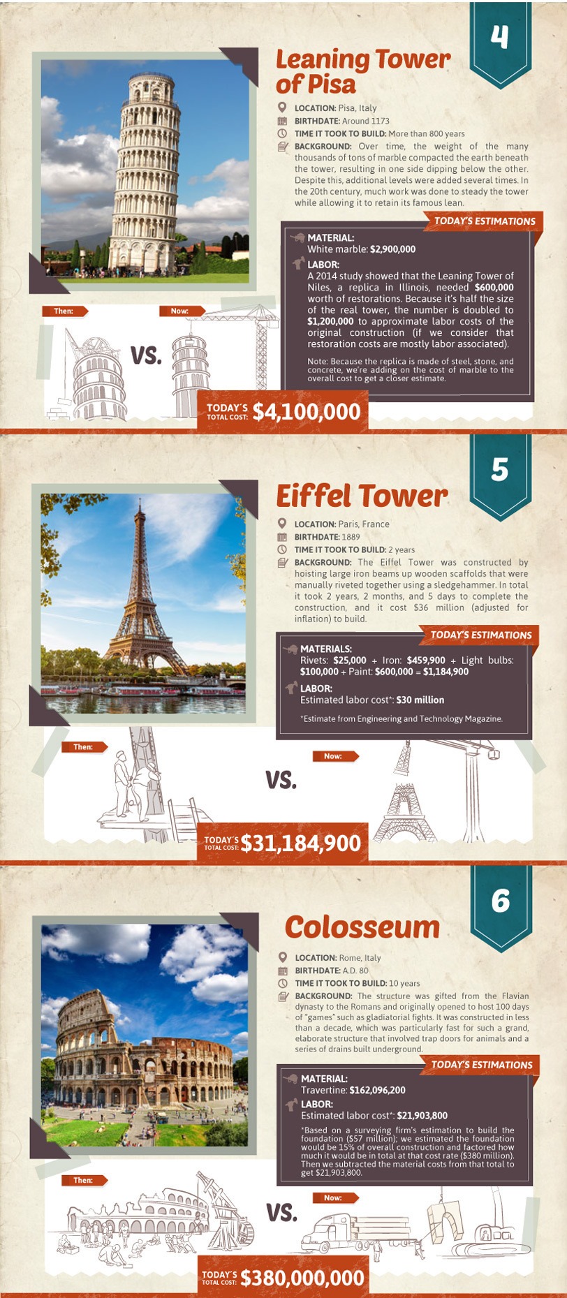 Pogledajte koliko bi koštala izgradnja čuvenih istorijskih građevina u 2015. godini.