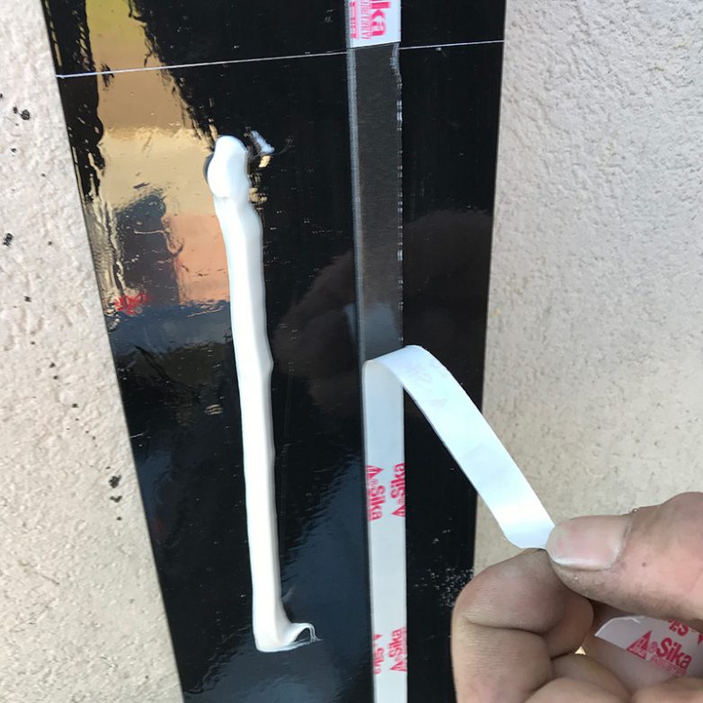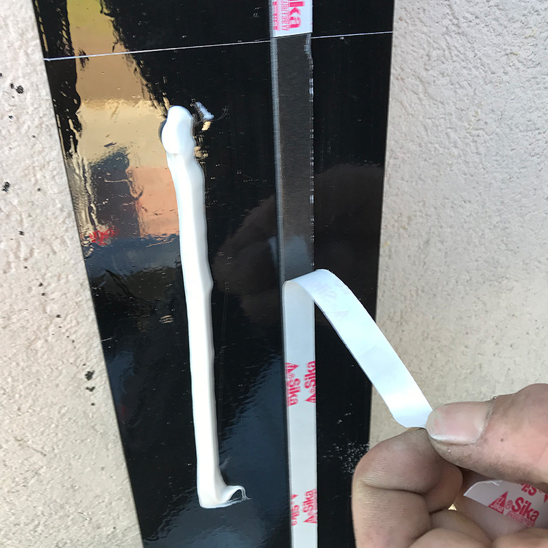 Proces postavljanja fasade je jednostavan i intuitivan. Na potkonstrukciju koju čine aluminijumski nosači postavljaju se FunderMax kompakt ploče. Površina aluminijumskih nosača se na mestu kačenja ploče prvo išmirgla kako bi se očistila od prljavštine. Posle brisanja površine krpom, valjkom se nanosi prajmer SikaTack koji priprema aluminijum za lepljenje. Potom se na mestu lepljenja stavljaju dvostrane trake za fiksiranje koje pločama obezbeđuju privremeni oslonac. Na isti način priprema se i kompakt ploča. Naime, posle šmirglanja na mestu lepljenja nanosi se isti prajmer. Potom je na aluminijumske nosače potrebno naneti lepak koji će trajno vezati ploču za nosače. U pitanju je elastični lepak SikaTack Panel koji se nanosi pištoljem u tankom sloju u obliku piramide. Ploča se postavlja na unapred određeno mesto, a postupak se ponavlja za sve ploče dok se ne pokrije željeni deo fasade.