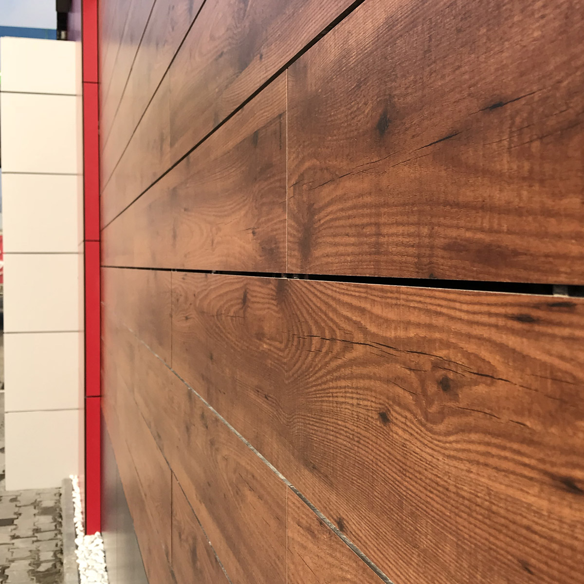 Jedan od načina da kuću ili zgradu učinite prirodnijim jeste korišćenjem FunderMax kompaktnih HPL ploča koje izgledaju kao prirodno drvo. U pitanju je veoma izdržljiv materijal s dvostranim slojem akrilnog poliuretana koji mu obezbeđuje dugotrajnost i otpornost na vremenske uticaje i kada je u pitanju kiša, vlaga ili mraz ali i po pitanju UV zračenja pa ove ploče neće vremenom promeniti izgled. Zbog svoje postojanosti ali i faktora dekorativnosti, ove ploče su čest izbor arhitekata kada se rade ventilisane fasade ili kada žele da naglase jedan deo objekta.
