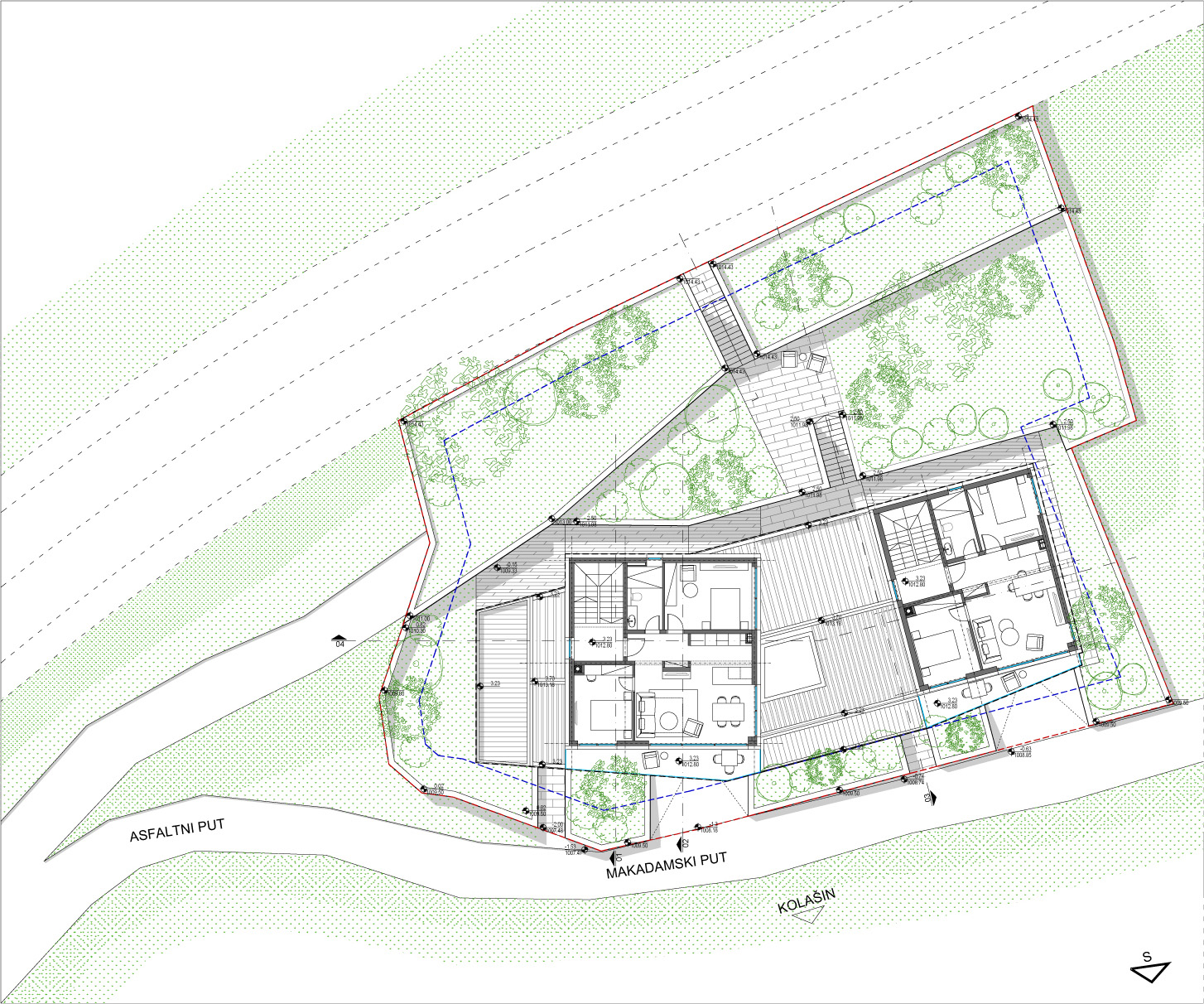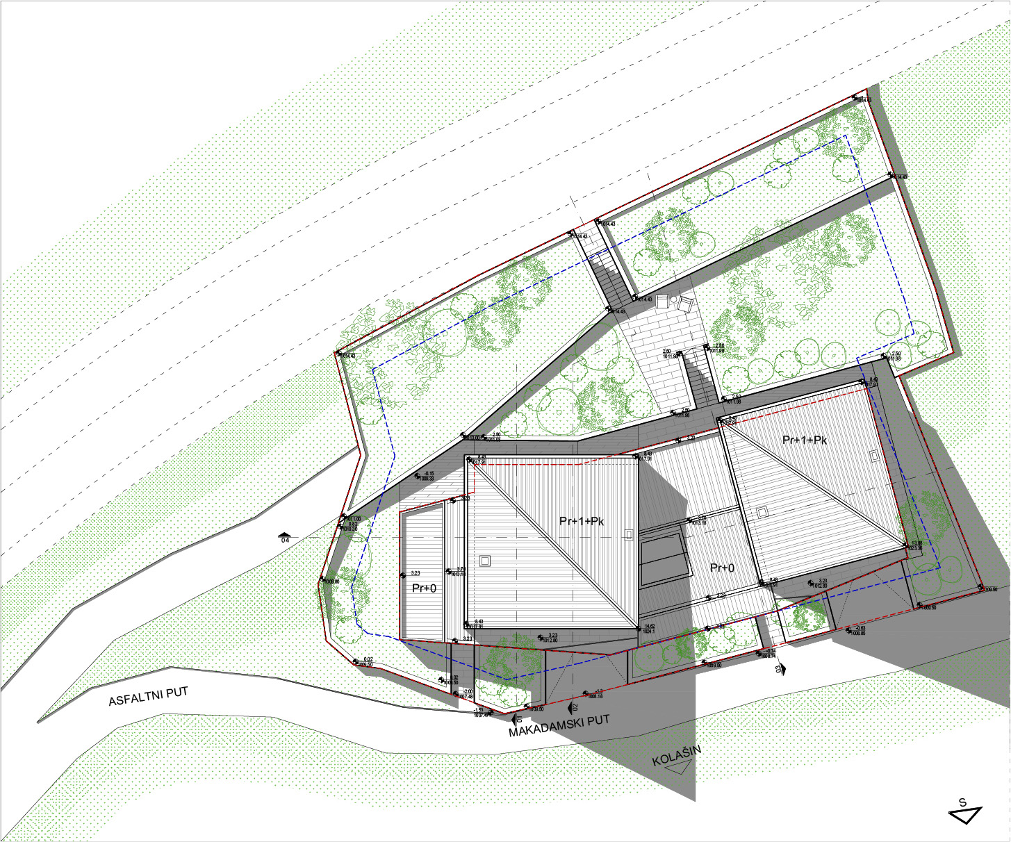 Prizemlja nisu namenjena stanovanju već zajedno sa okućnicom formiraju kaskadni podijum namenjen dodatnim sadržajima.