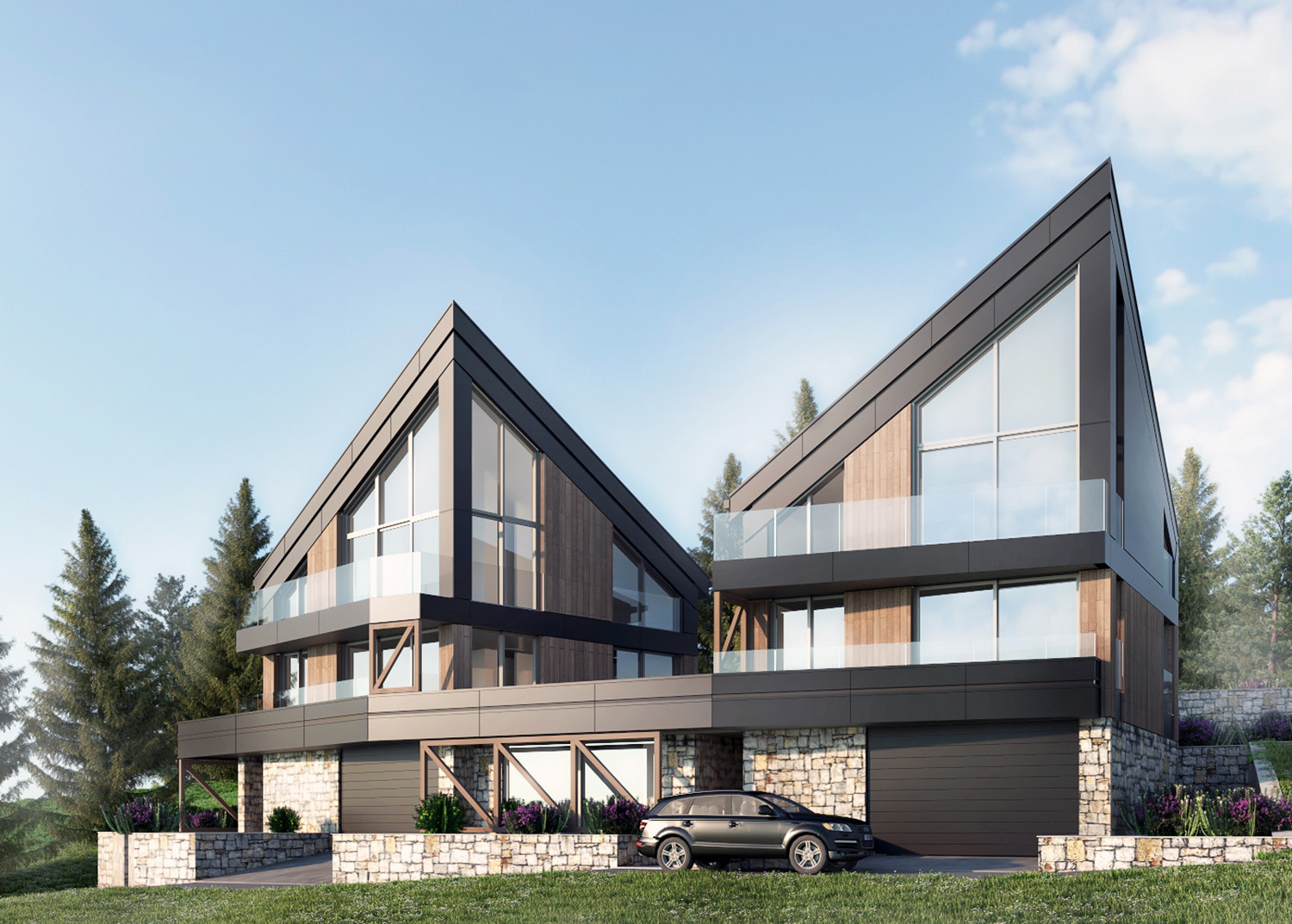 Ovi objekti projektovani su u duhu tradicionalne planinske arhitekture interpretirane na savremen način, uz korišćenje prirodnih materijala.