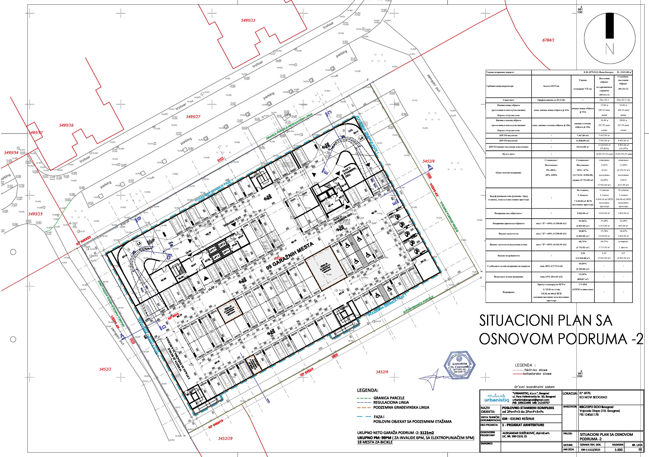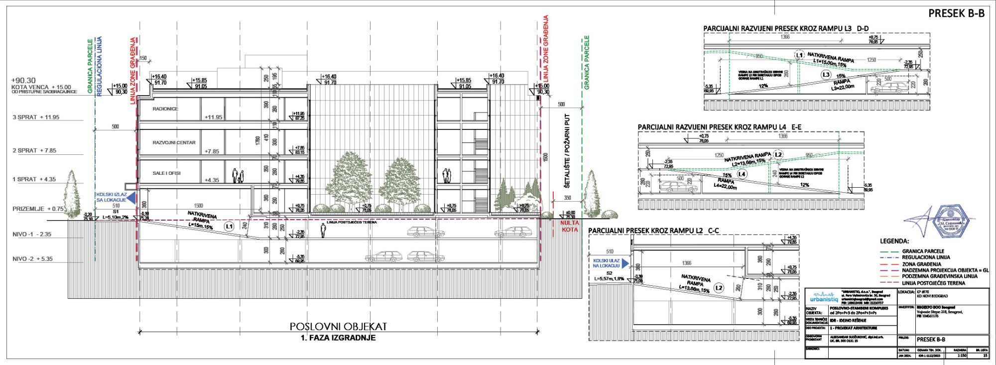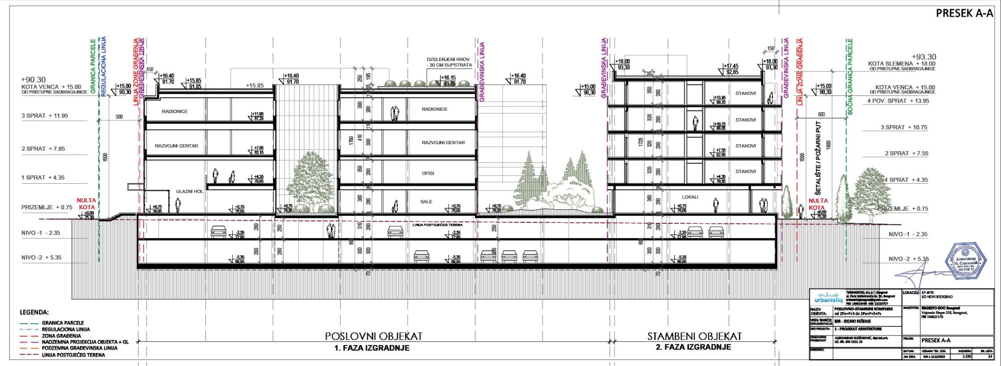 Kompleks bi se izvodio fazno, gde prvu fazu čini izgradnja poslovnog objekta sa podzemnom garažom, a drugu izgradnja nadzemnog dela stambeno-poslovnog objekta.