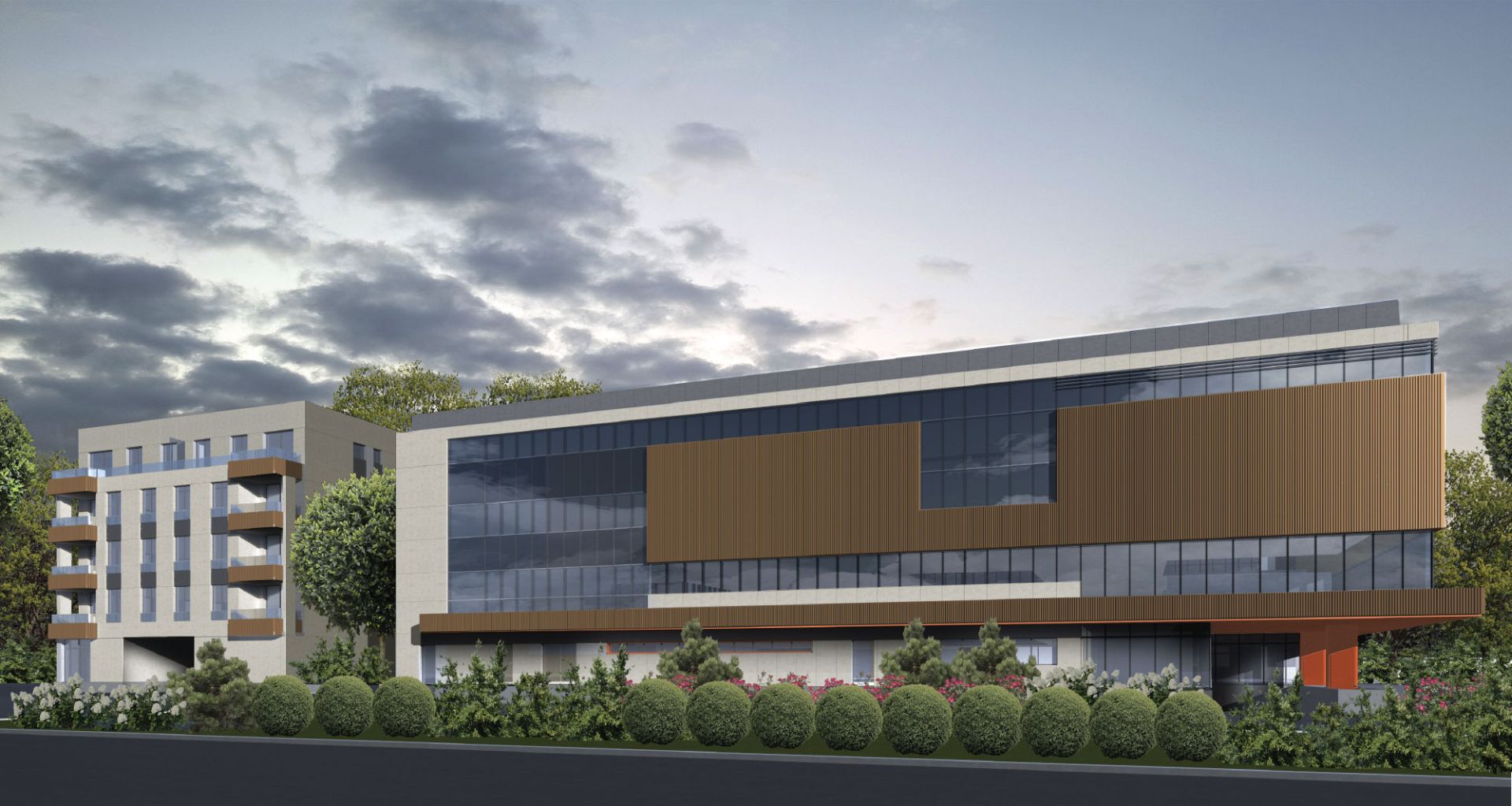 Poslovno-stambeni kompleks se sastoji iz tri celine – poslovni objekat, stambeno-poslovni objekat i zajedničke podzemne etaže sa garažom, povezane u jedinstvenu formu arhitektonskim oblikovanjem.