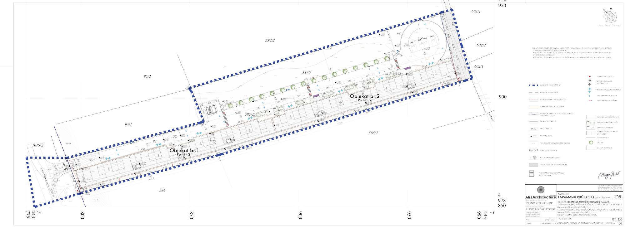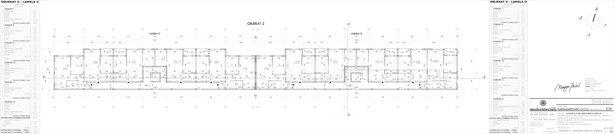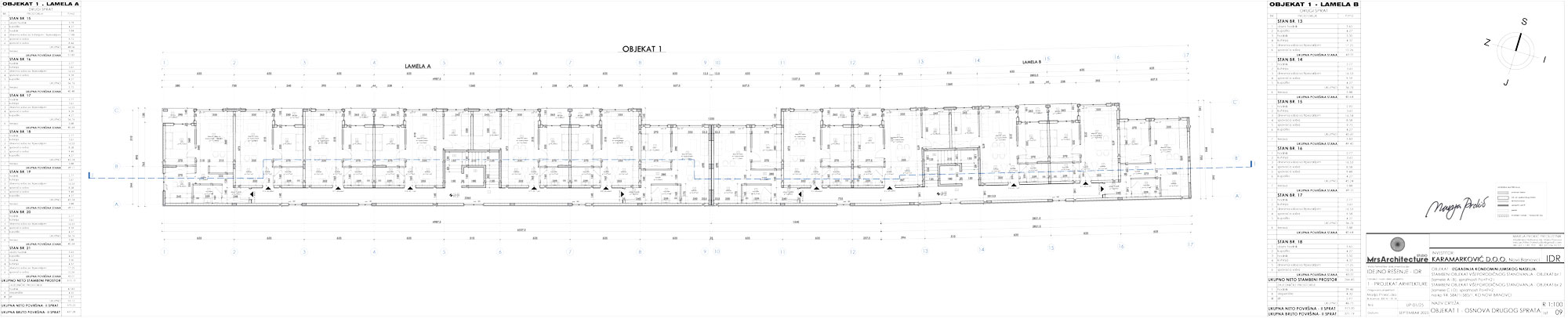 U planiranim objektima projektovano je ukupno 75 stambenih jedinica, po strukturi isključivo dvosobnih i trosobnih. Ukupna bruto razvijena građevinska površina za oba objekta iznosi 4.689 m² (Objekat 1 – 2.430 m², Objekat 2 – 2.259 m²).