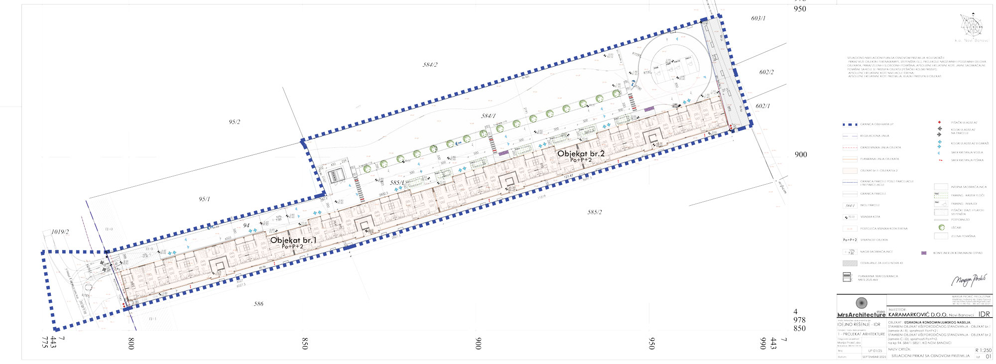 Kako se navodi u dokumentaciji, izgradnja kondominijumskog naselja u Novim Banovcima obuhvatiće dva objekta višeporodičnog stanovanja – Objekat 1 (Lamele A i B) i Objekat 2 (Lamele C i D), oba spratnosti Po+P+2, ukupne dužine 185 metara.