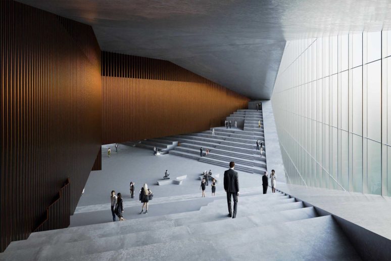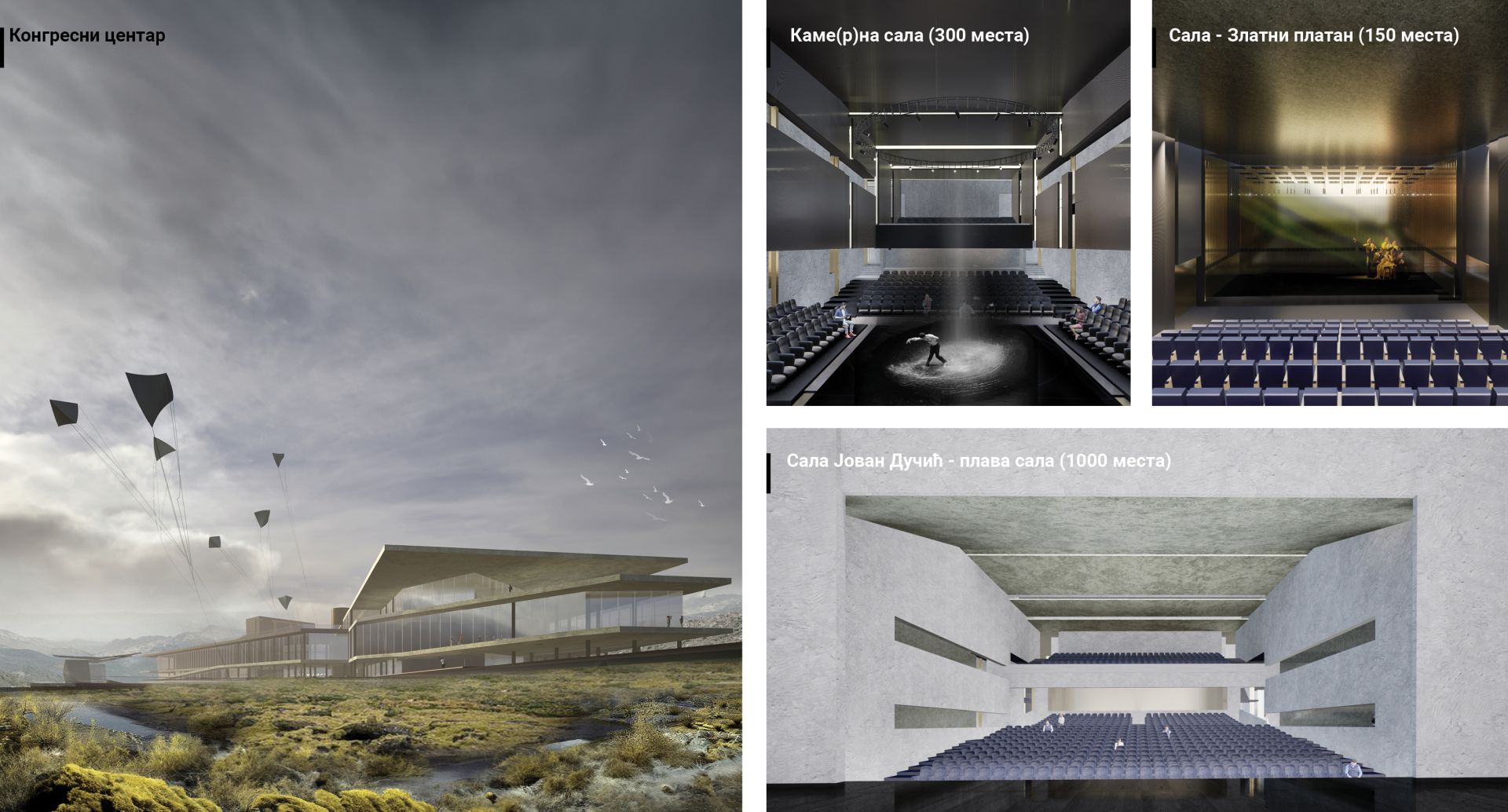“Forma kongresnog centra inspirisana je pojedinačnim formama kraškog reljefa – kamenih oblika, stena i škarpi, što se u radu interpretira raslojavanjem vertikalnih i horizontalnih ravni, prodorima volumena, stepenovanjem oblika i oslobađanjem partera“ – naveli su iz tima koji je osvojio treću nagradu.