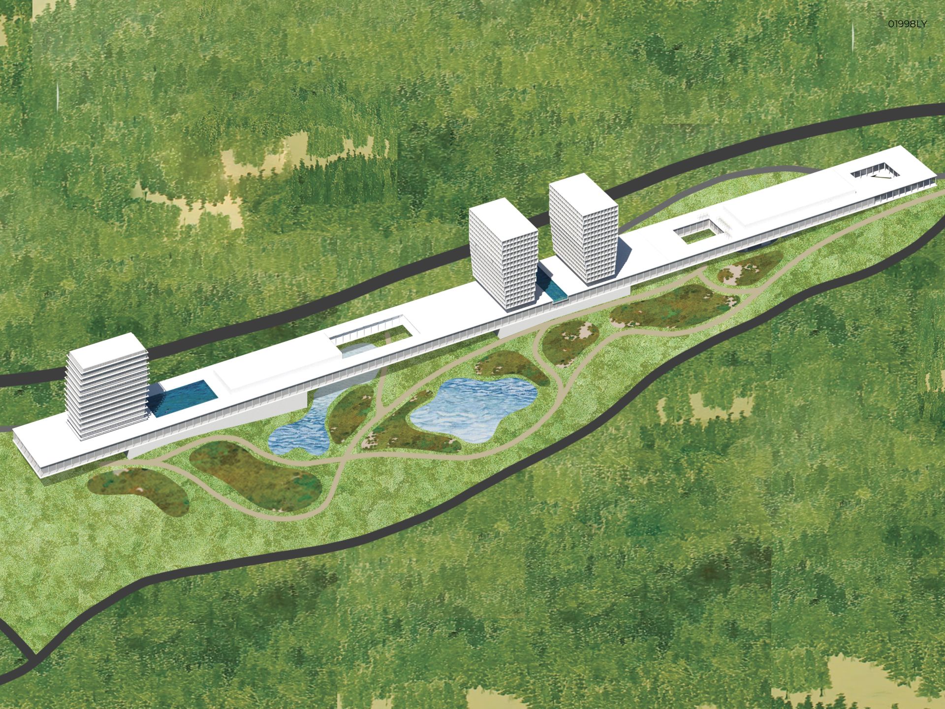 “Svaki objekat je jasno prepoznatljiv u zoni interesovanja posetilaca i svi objekti su među sobom povezani šetnom stazom, koja u oblikovnom smislu predstavlja skulpturalni elementa novoizgrađenog pejzaža, dok funkcionalno omogućuje kontinualni komunikacijski tok svim grupama korisnika“.