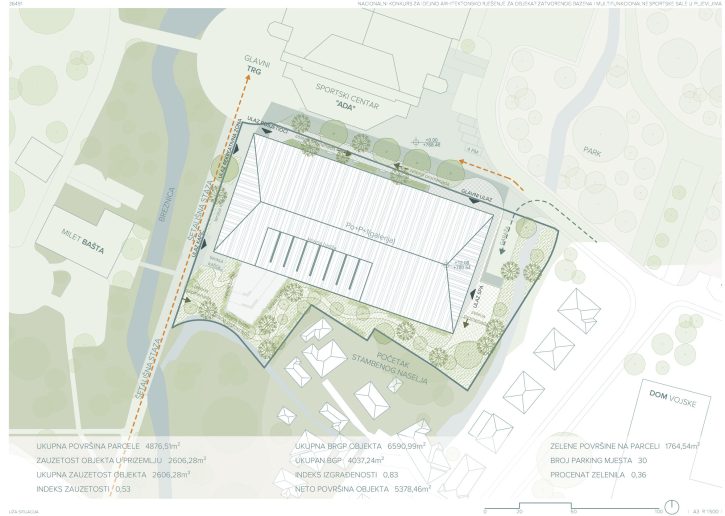 „Centralni motiv – bazen – pozicioniran je između zone sporta i zone rekreacije, čime se omogućava njegova dvostruka namena: kako za sportska takmičenja, tako i za svakodnevnu rekreativnu upotrebu stanovništva“, navodi žiri .