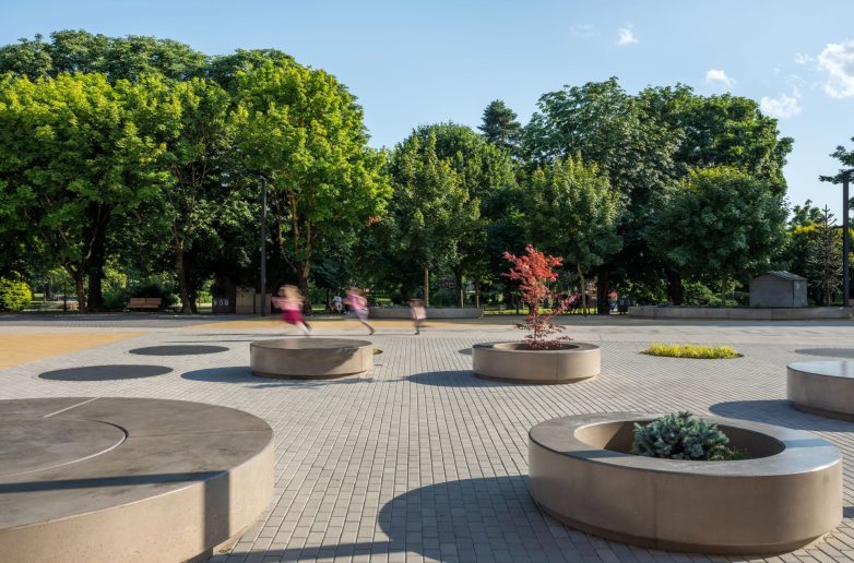 „Urbana oprema trga prilagođava se ambijentu i podstiče različite aktivnosti, te obuhvata drvene klupe uz park, klupe/postamente na ‘art-trgu’, klupe-biciklarnike na ulaznim zonama trga, kao i kružne klupe oko postojećih visokih stabala prema Parku“ – kažu zagrebačke arhitekte.