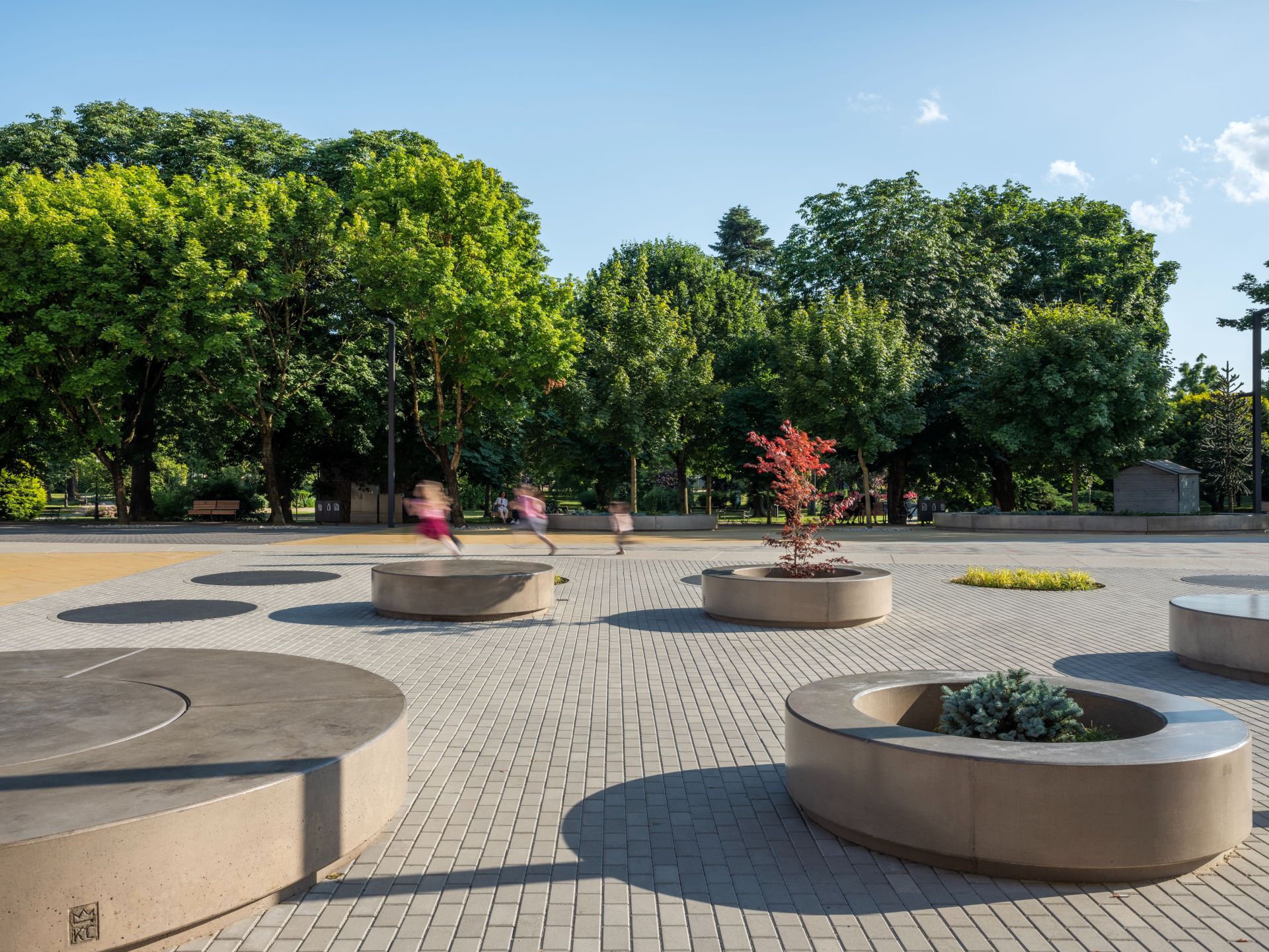 Prihvaćajući protočnost kao neminovnost u funkcionisanju Trga, a biciklističke staze kao svojevrsni koordinatni sistem, arhitekte iz NFO formirale su zone zadržavanja između spomenutih staza i perimetra trga.