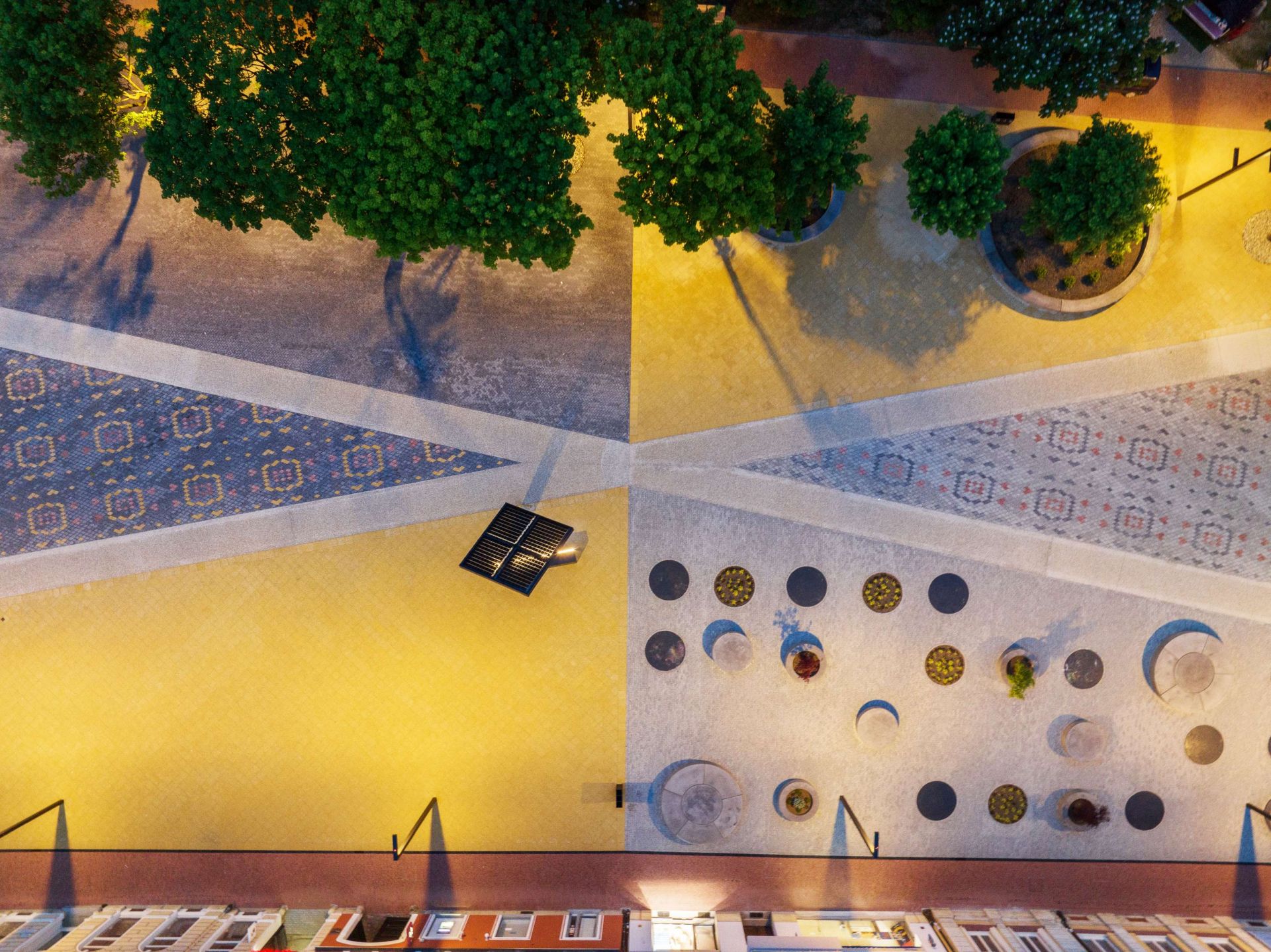 Najznačajnija intervencija izvedena je na centralnom gradskom trgu, koji je podeljen u dvanaest manjih zona sa različitim koloritom behatona.